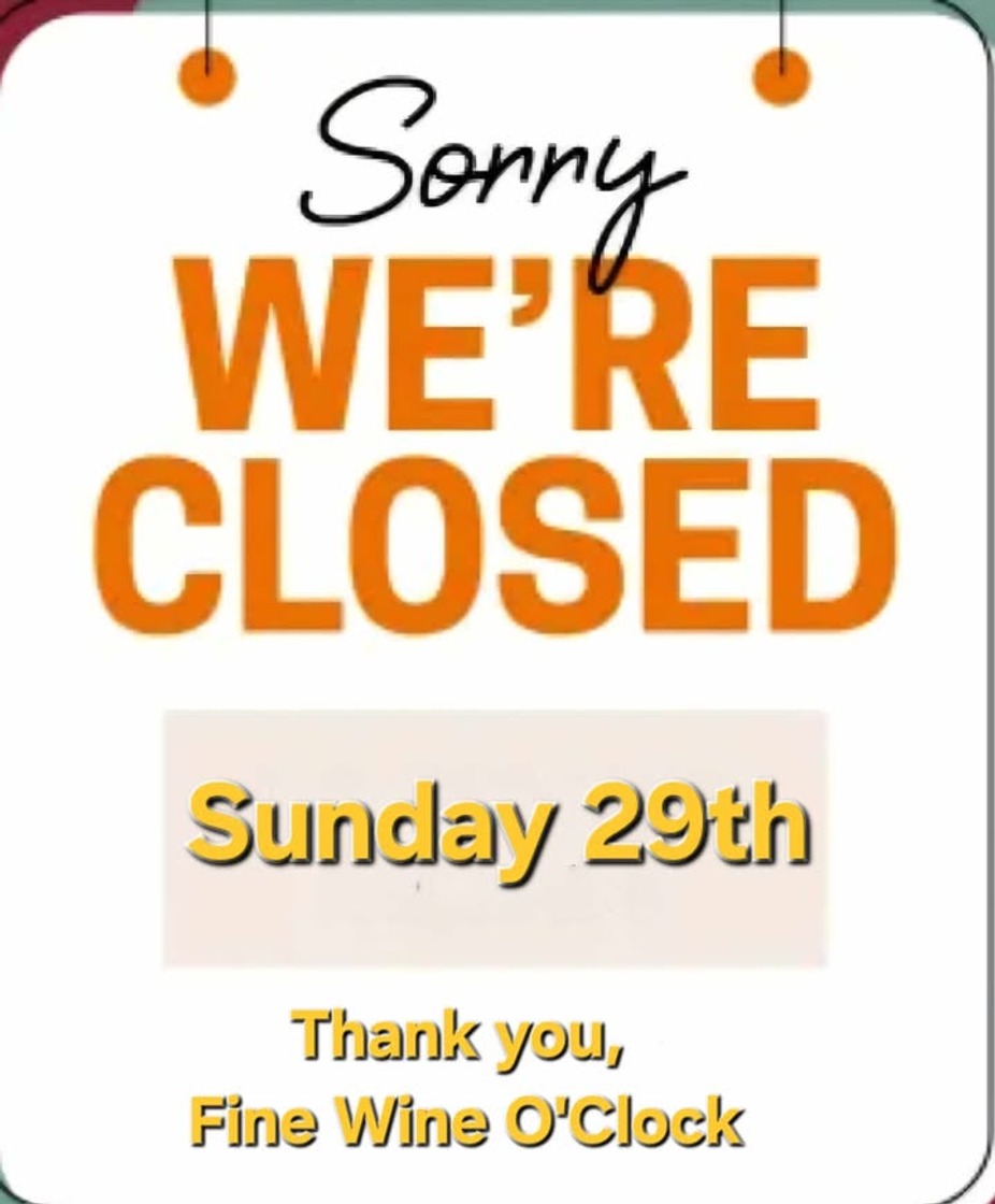 Fine Wine O'clock will be closed on Sunday, March 29th