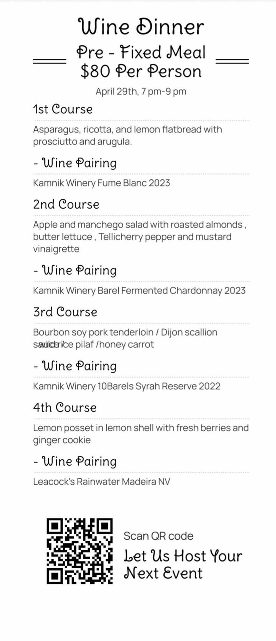 Pre-Fix 3-course menu crafted by Personal Chef